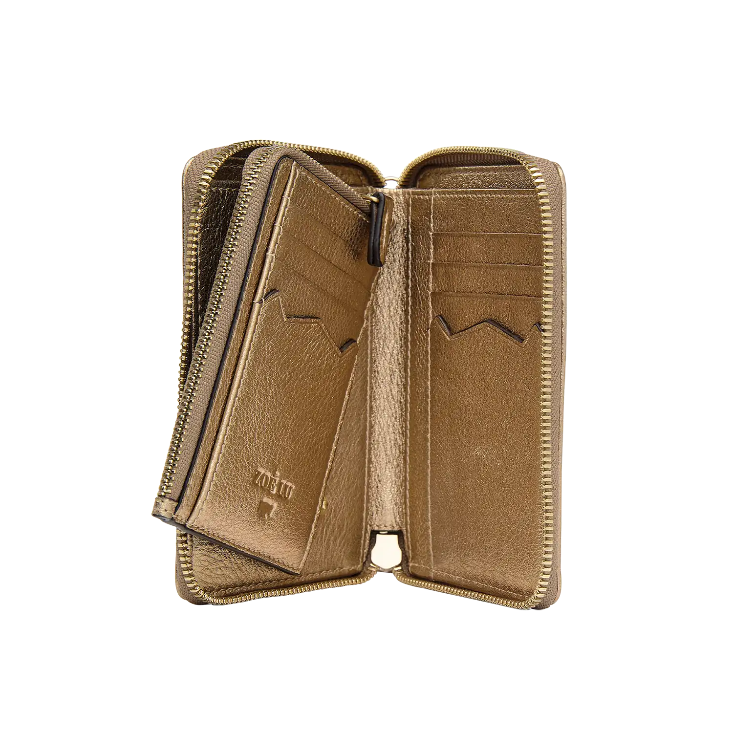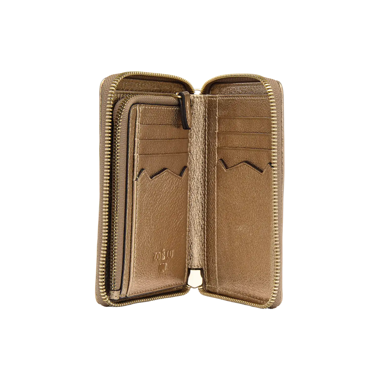 Goldmariechen, warum strahlst Du so? Der kleine Bro' von ZOÉ LU, Geldbeutel mit Mega-Talenten im ikonischen Bat-Stitching. Dein persönlicher Assistent in Sachen "Nie wieder Chaos". Mit dem abnehmbaren Etui ist er sogar Dein perfekter Walker: Clutch mit oder ohne Riemen für den großen Abend. Jetzt ist Dein Leben voll sortiert. Nur eines: Lass ihn trotzdem die Drinks zahlen. Was bleibt ihm denn sonst?