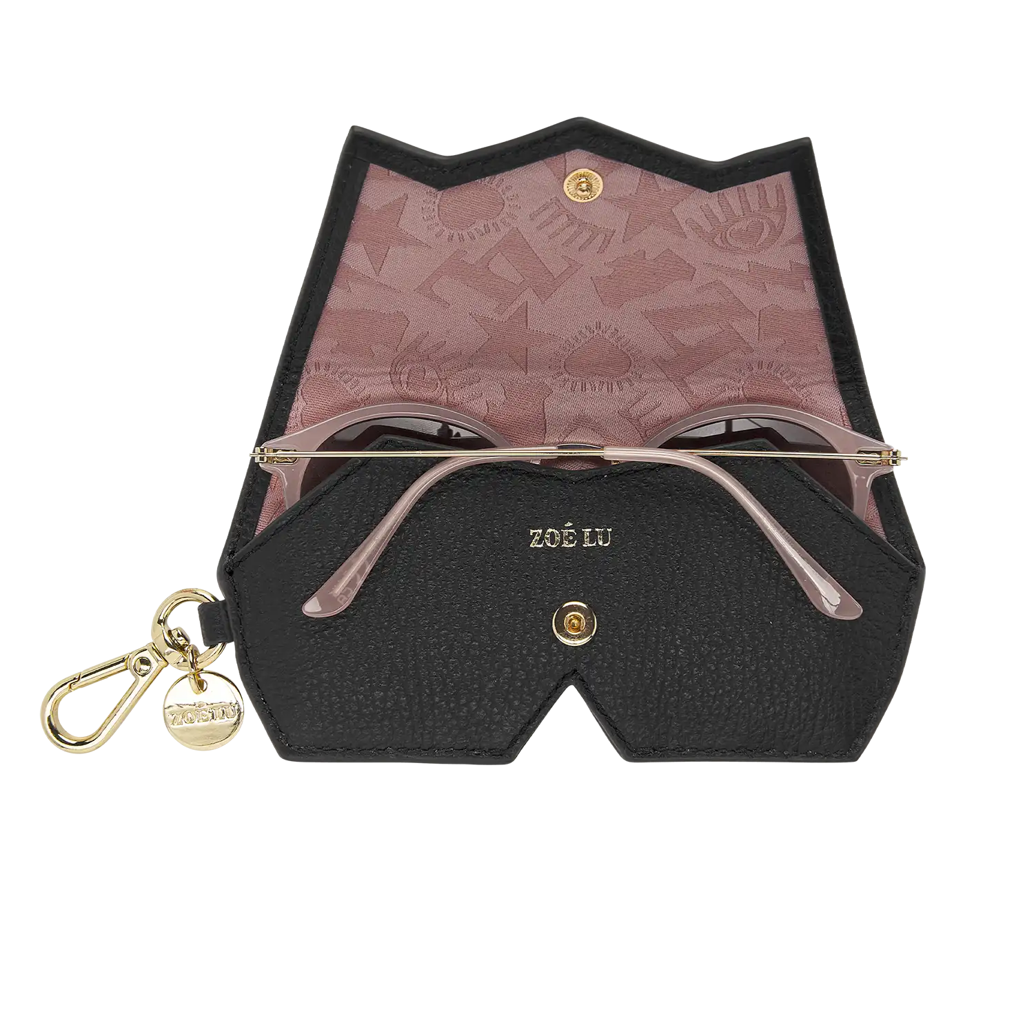 Kinda Sunny - unser Brillenetui auch hochwertigem italienischen Leder. Mit dem Karabiner kann es ganz leicht an der Tasche befestigt werden.