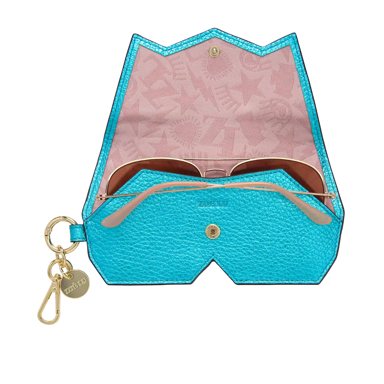 Kinda Sunny - unser Brillenetui auch hochwertigem italienischen Leder. Mit dem Karabiner kann es ganz leicht an der Tasche befestigt werden.