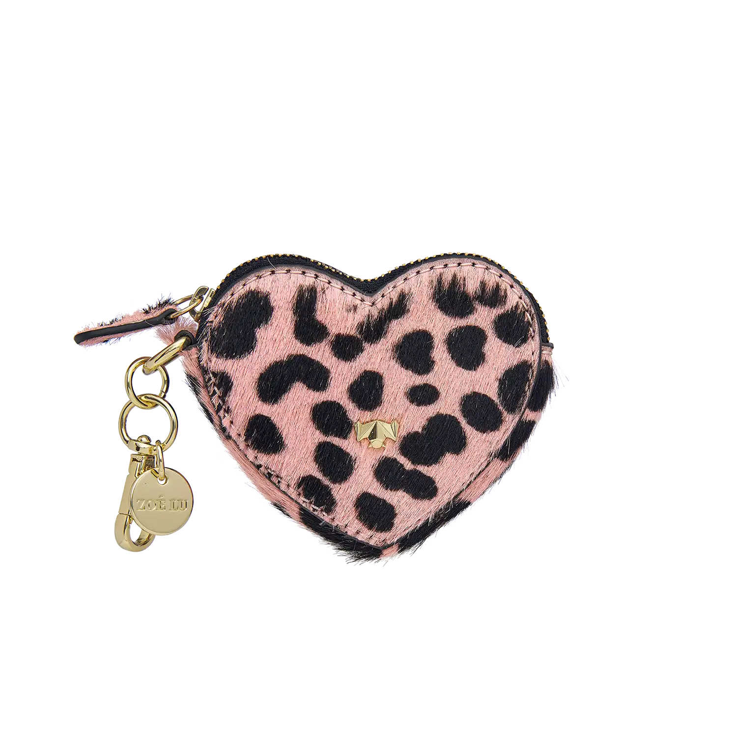 • Vorderseite mit kleiner Logofledermaus aus hellgoldenem Metall, auf der Rückseite geprägtes ZOÉ LU Logo
