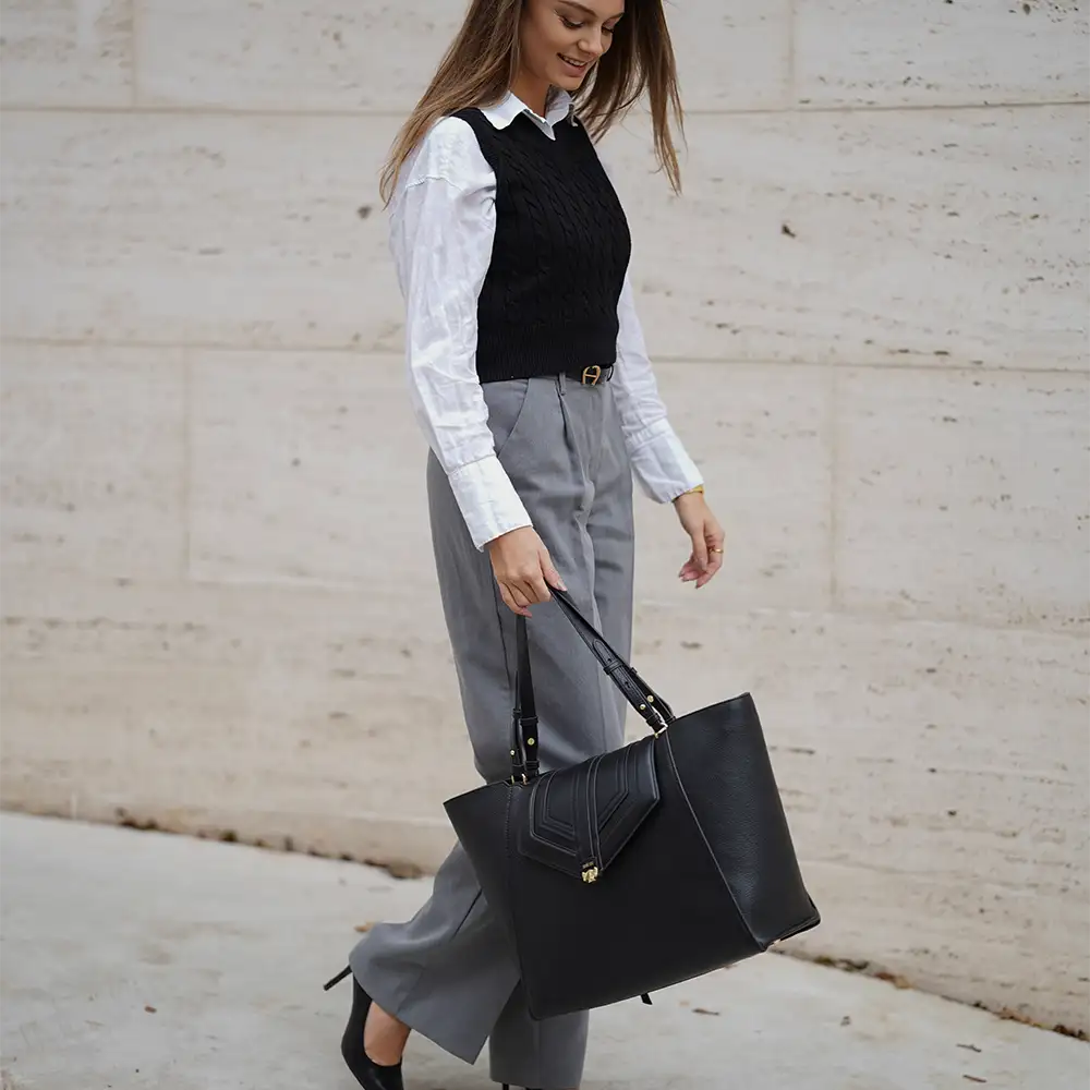 Kombiniere eine Square Bag oder eine Triple Miss immer mit einer Eckigen Wechselklappe.