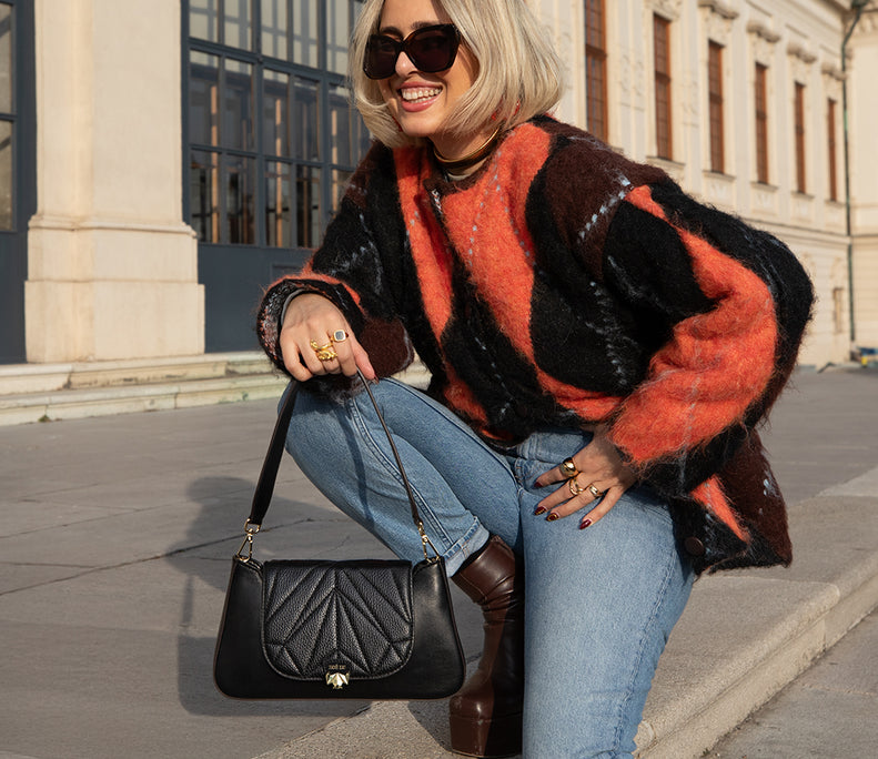 Kombiniere eine Square Bag oder eine Triple Miss immer mit einer Eckigen Wechselklappe.