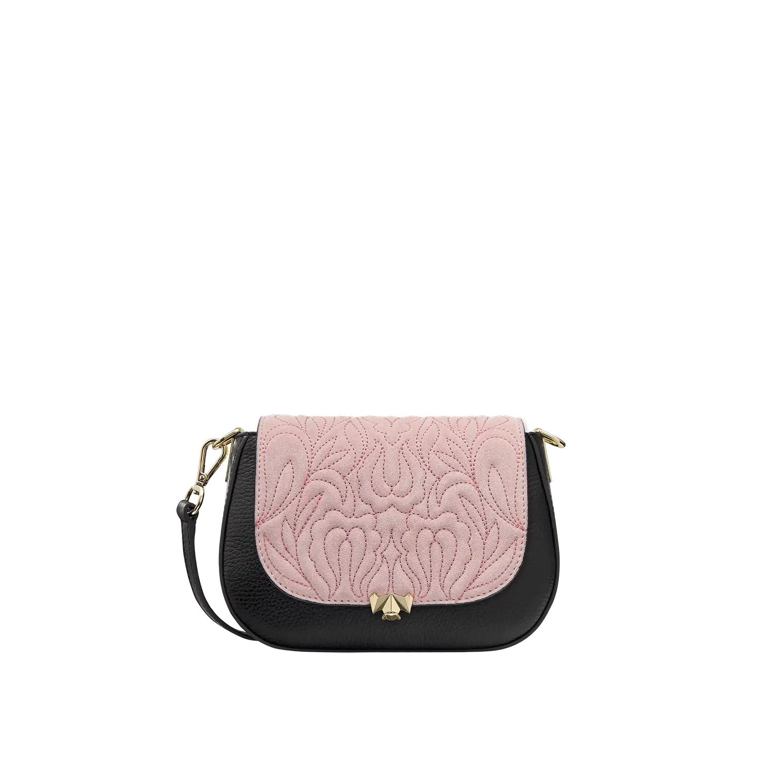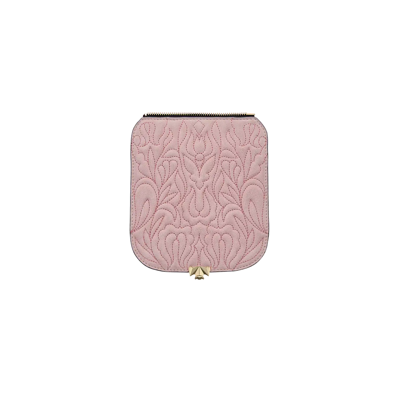Die Wechselklappe besteht aus hochwertigem Veloursleder aus Italien. Die aufwendigen Stickereien sind hanggefertigt und zeigen florale Elemente. Durch die gepolsterte Optik, wirken die Blumen noch schöner und lebendiger. Die Metallic Garne sind Made in Germany und Oeko-tex Standard 100 zertifiziert.