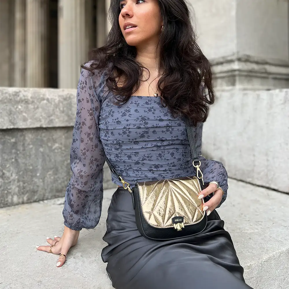 • Polierter, hellgoldener Metallreißverschluss mit innovativem Secure-System zur Befestigung und zum Austauschen der ZOÉ LU Mini Wechselklappen