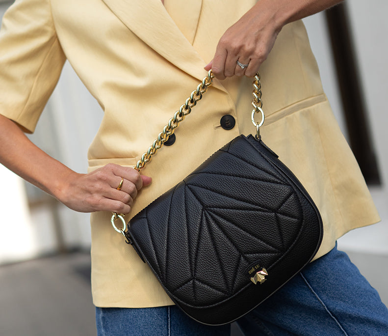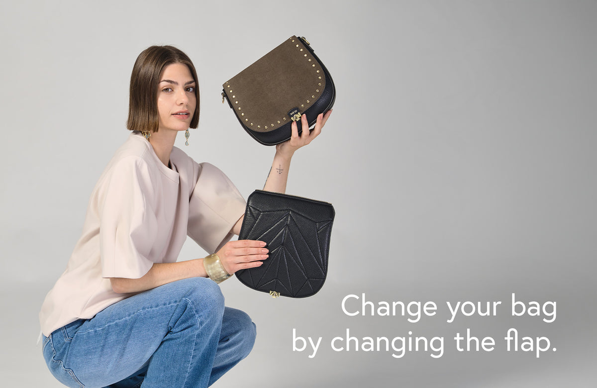Kombiniere eine Square Bag oder eine Triple Miss immer mit einer Eckigen Wechselklappe.