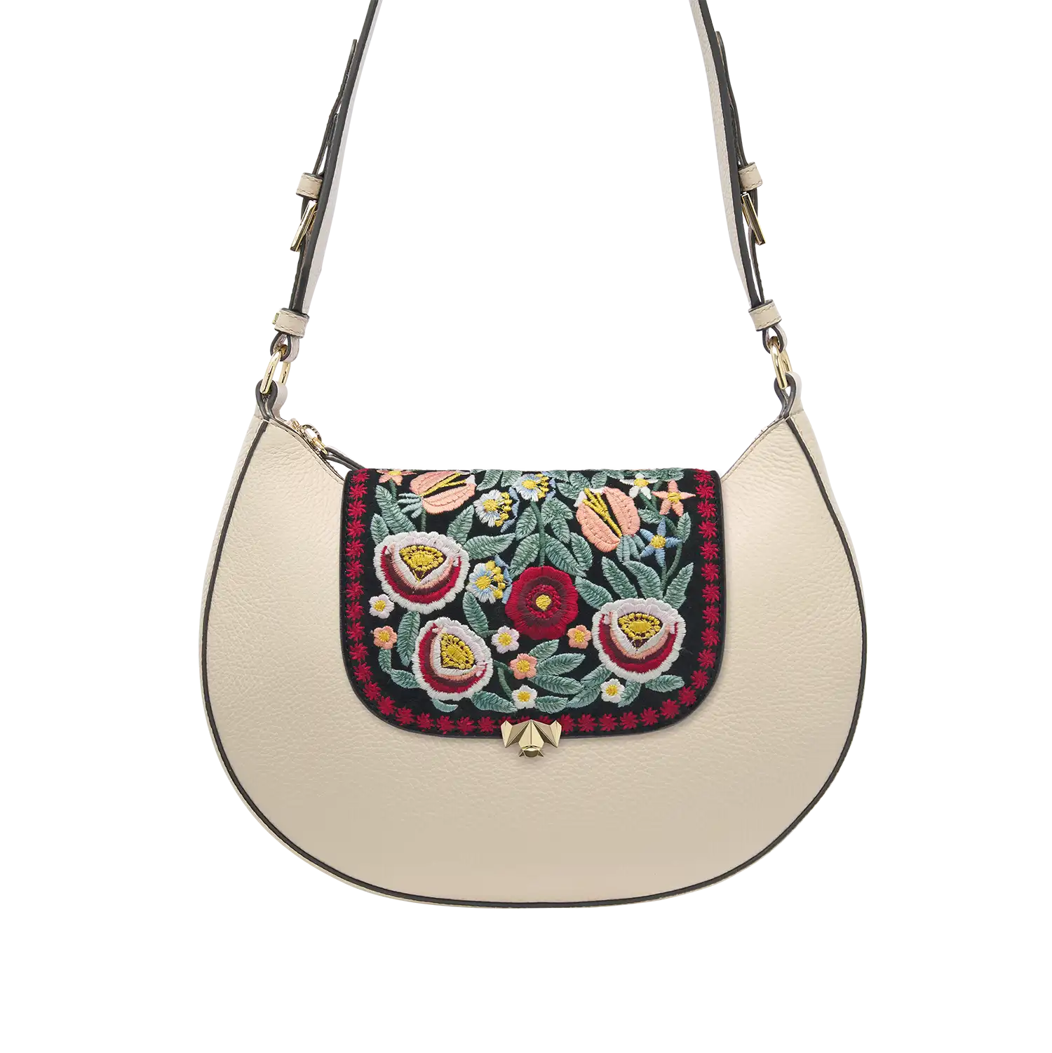 • Handgefertigt aus hochwertigem Veloursleder aus Italien und mit Blumen aufwendig bestickt. Das Leder bietet eine angenehm weiche Haptik und natürliche Optik.